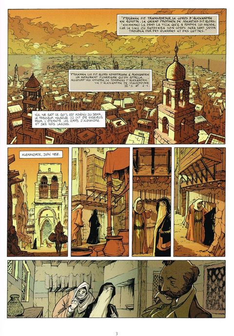 Alexandrie, juin 1858. Les pilleurs de sépultures se livrent à une bataille acharnée pour s'approprier les trésors des antiques catacombes. Parmi eux, sept ressortissants français découvrent les ruines d'une chapelle souterraine dédiée à Alexandre le Grand : le tombeau du Conquérant ne peut être loin. Réunis par cette promesse de richesses, les sept aventuriers se mettent en quête du seul manuscrit capable de les guider, dans un dédale souterrain gorgé d'eau, jusqu'au tombeau. Mais ils ne sont pas les seuls à le rechercher : complots, trahisons et meurtres ponctueront cette chasse au trésor peu commune.