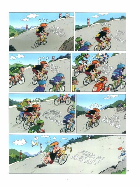 Le Tour de France 2016 se déroulera du 2 au 24 juillet. Il se composera de 21 étapes, dont 9 de montagnes, sur une distance totale de 3 519 km. La grande boucle ne pouvait qu'inspirer une magnifique BD à Bercovici (Les femmes en blanc) spécialiste incontesté du gag.