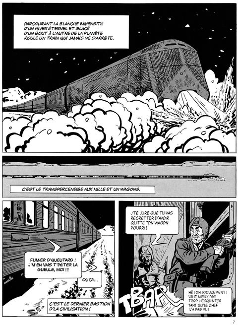 Cette intégrale rassemble les trois tomes originaux du Transperceneige à savoir : Le Transperceneige (1984, réédition sous le titre L'Echappée en 1999), L'Arpenteur (1999), La Traversée (2000). Un jour, la bombe a fini par éclater. Et toute la Terre s'est brutalement retrouvée plongée dans un éternel hiver gelé, hostile à toute forme de vie. Toute ? Pas tout à fait. Miraculeusement, une toute petite portion d'humanité a trouvé refuge in extremis dans un train révolutionnaire, le Transperceneige, mu par une fantastique machine à mouvement perpétuel que les miraculés de la catastrophe ont vite surnommé Sainte Loco. Mais à bord du convoi, désormais dépositaire de l'ultime échantillon de l'espèce humaine sur cette planète morte, il a vite fallu apprendre à survivre. Et les hommes, comme de bien entendu, n'ont rien eu de plus pressé que d'y reproduire les bons vieux mécanismes de la stratification sociale, de l'oppression politique et du mensonge religieux... Bande dessinée majeure des années 80 créée par Jean-Marc Rochette et Jacques Lob, reprise à la fin des années 90 pour deux volumes supplémentaires par Benjamin Legrand après le décès de son scénariste, la trilogie du Transperceneige reparait en un volume unique à l'occasion de son adaptation au cinéma (Snowpiercer, sur les écrans dès la fin de l'été) par le plus célèbre des cinéastes coréens, Bong Joon-ho. La redécouverte de l'une des meilleures sagas de science-fiction qu'ait produite la bande dessinée française : trente ans après sa création, Le Transperceneige n'a rien perdu de sa puissance et de sa singulière modernité.