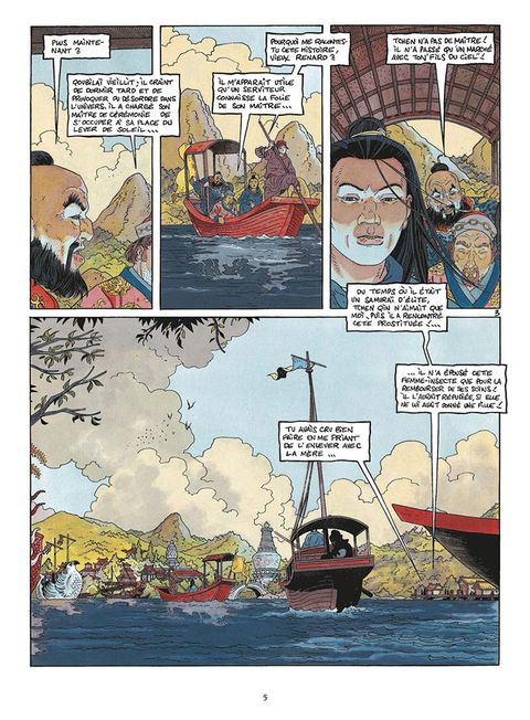 La dynastie mongole règne sur la Chine où le vénitien Marco Polo est le conseiller de Koubilai, le Khan. C'est à Khan-Balig ou encore Cambaluc que nous retrouvons le capitaine Tchen Qin, bien décidé à récupérer sa femme Mara et son enfant avant de quitter le pays sur l'ordre du Khan. Capturé, alors qu'il s'était introduit dans le harem, Qin est condamné à se livrer à la chasse au Gherkek. Notre héros se demande qui est ce mystérieux Gherkek qui semble partout inspirer la terreur. Ce dixième volet du Vent des Dieux témoigne de l'imagination débordante de Patrick Cothias bien décidé à poursuivre cette saga au succès de plus en plus grand. Créé graphiquement par Philippe Adamov, Le Vent des Dieux est depuis cinq albums dessiné par Thierry Gioux qui respecte l'oeuvre tout en y apportant sa propre originalité.