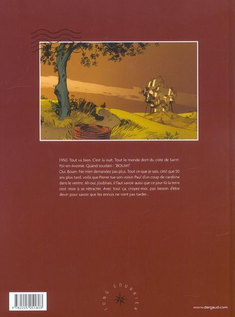 1950. Tout va bien. C'est la nuit. Tout le monde dort du côté de Saint-Pol-en-Avoinie. Quand soudain "" boum ! "". Oui, Boum. Ne m'en demandez pas plus. Tout ce que je sais, c'est que 50 ans plus tard, voilà que Pierre tue son voisin Paul d'un coup de carabine dans le ventre. Ah oui, j'oubliais, il faut savoir aussi que ce jour-là la terre s'est mise à se rétracter. Avec tout ça, croyez-moi, pas besoin d'être devin pour savoir que les ennuis ne vont pas tarder.