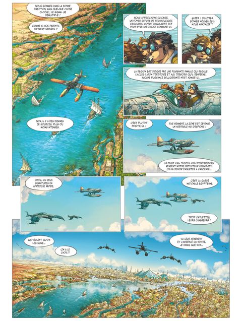 Quand les pyramides d’Égypte révèlent tous leurs secretsPartis à la recherche de leurs parents, Émilien, Noémie, accompagnés de Mathilde et Winfrey, suivent le signal de leur détecteur jusqu'au Caire où ils posent leur hydravion. La capitale égyptienne semble être un véritable foyer de technologies obscures ! Dès leur arrivée Sélim, le jeune garçon qui leur sert de guide, propose de les présenter à Nayla, une archéologue avec laquelle leurs parents semblent avoir été en lien. Pourchassés par des espions de tous bords, les enfants atteignent enfin l’oasis où Nayla effectue ses fouilles. Mais elle se montre bien plus intéressée par l’appât du gain que par leur quête et leur propose un marché : elle leur confiera tout ce qu'elle sait à condition qu'ils l'aident à accéder à une mystérieuse pyramide ! À l’intérieur un trésor sommeille ! Les enfants acceptent, cette pyramide contient sûrement quelques-unes des réponses qu'ils cherchent. Mais cette expédition n'est pas sans danger, des robots gardiens protègent les lieux. Néanmoins, nos jeunes héros parviennent à en ressortir avec le trésor tant convoité par Nayla : une sphère d'activation ! Que compte faire Nayla de cette sphère ? Sait-elle vraiment où sont leurs parents ? Quand les enfants découvrent enfin les sombres desseins de cette femme qui n’est pas ce qu’elle prétend être, il est déjà trop tard. Émilien, Noémie et Mathilde atterrissent tout droit dans l’antre de l’ennemi et se retrouvent mêlés à un projet spatial russo-germanique qui les dépasse ! Malgré tout, leur périple pourrait leur permettre d'en apprendre davantage sur leur singularité génétique… Et si la sphère était l’outil qui leur manquait pour comprendre les secrets de leurs origines et du lien qu'ils ont avec les technologies obscures ?Découvrez le nouvel album de cette grande série d’aventures qui nous entraîne au cœur des mystérieuses pyramides d’Egypte. Que ce soit à dos de dromadaires, en navigant sur le Nil où en parcourant les faubourgs de la ville, nos trois héros vont vivre des péripéties riches en rebondissements et tenter de percer les secrets de leurs origines.