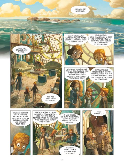Émilien, Térence, Noémie et Amélia sont maintenant à bord du transatlantique, une fabuleuse machine survolant l'océan à destination de New York. C'est là-bas qu'aura lieu le fameux concours Jules Verne, que personne n'a jamais réussi à gagner. Nos héros et leurs acolytes profitent du voyage pour enquêter sur les autres participants du concours et ainsi démasquer le commanditaire du prototype conçu par le père d'Émilien. Le problème, c'est que chacun d'entre eux fait un suspect idéal. À moins que le commanditaire ne soit ce mystérieux Troisième Axe avec ses redoutables robots ? Suivez les aventures steampunk de deux enfants brillants et intrépides ! Ce troisième tome conclut le premier cycle de cette série inventive et passionnante - entre La Croisée des mondes et Les Orphelins Baudelaire.
