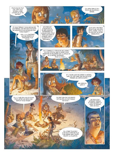 Ce nouvel opus poursuit l'aventure avec un souffle renouvelé. Échoués sur une île mystérieuse, Noémie, Émilien et leurs compagnons affrontent des défis captivants, entre construction d'un radeau, rencontres inattendues et découvertes fascinantes. Le récit, riche en rebondissements, maintient un rythme soutenu, tandis que les illustrations de Silvio Camboni (...) Voir le commentaire