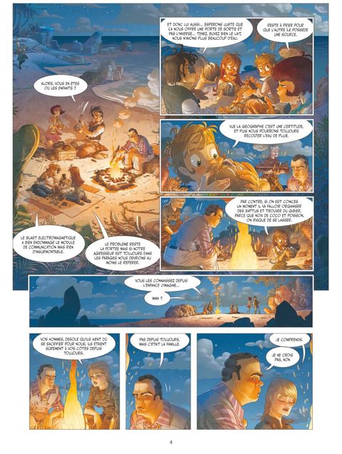 Seuls au monde ? Échoués sur une île déserte au beau milieu du Pacifique, Noémie, Émilien, Térence, Capone et les autres s'organisent comme de véritables robinsons. Mettant en commun leurs compétences, ils fabriquent un radeau à voile qui ne tarde malheureusement pas à partir en lambeaux avant qu'ils n'aient atteint leur objectif. Les intrépides cousins et Sigrid, l'espionne allemande, se retrouvent séparés du reste du groupe et rejoignent malgré tout une plage salvatrice. Là, ils découvrent, enfoui dans le sable, un mystérieux robot. Ils parviennent à le remettre en marche et celui-ci leur fait découvrir un peu mieux les mystères de l'île où ils ont échoué. Parmi les surprises qui les attendent, un refuge de pirate et son trésor, mais surtout une cité cachée qui semble appartenir à une civilisation disparue ! Découvrez le nouvel album de cette grande série d'aventure steampunk plébiscitée par la critique et le public !