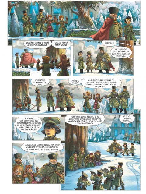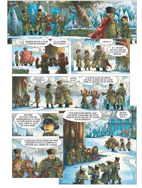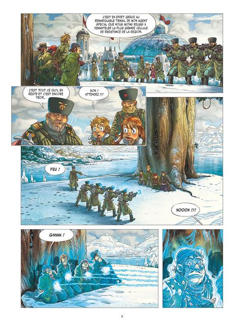 Se libérer de ses chaînes et ne plus avoir froid !La troisième saison du Voyage extraordinaire : 20 000 lieues sous les glaces touche à sa fin avec cet opus dans lequel on retrouve Emilien et Noémie aux mains du Général russe ! Il attend d’eux une collaboration totale : leurs connaissances singulières et aigues des technologies obscures représentent un bien précieux pour donner l’avantage à ses troupes qui occupent l’Angleterre. Les enfants sont enfermés dans un laboratoire glacial sous l’œil menaçant d’Hector et l’ours polaire du général. Mais cloîtrer nos deux inventeurs dans un laboratoire n’est pas la plus judicieuse des idées. Rejouant à leur manière La Grande Evasion, ils détournent un appareil expérimental et s’échappent. En compagnie d’Hector, ancien camarade et agent triple, ils vont tenter d’échapper aux drones russes et de rejoindre l’Ecosse libre. Là-bas se trouve Churchill et son réseau de résistants avec qui la grande bataille pour libérer l’Angleterre va se jouer. Emilien, Noémie et leurs alliés arriveront-ils à repousser l’armée d’occupation et à libérer l’Angleterre des glaces qui l’emprisonnent ?