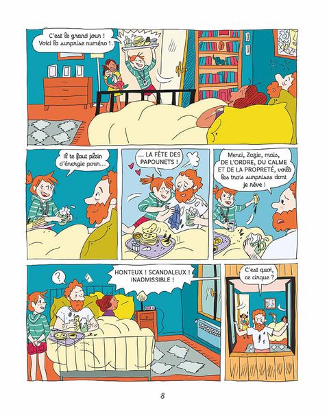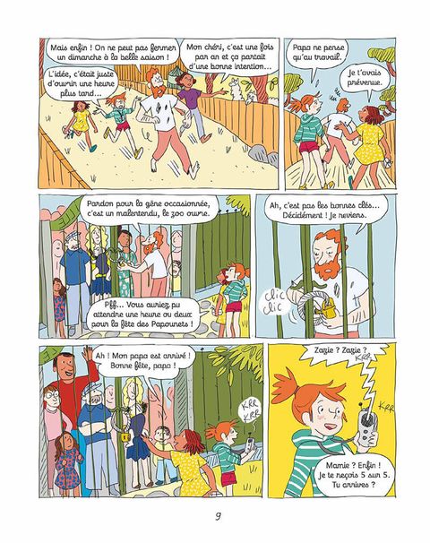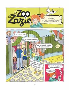 Dans la famille de Zazie, je demande le père, la belle-mère, la demi-soeur... mais aussi le chien, le chat, les oiseaux, les girafes, les pandas et les lions ! Car chez Zazie, on ne manque jamais de compagnie. Quand on vit dans une famille recomposée, on a toujours plein de gens avec qui s'amuser. Mais quand en plus, sa maison est dans un zoo, on ne peut pas s'ennuyer une minute ! Comme son papa, Zazie est têtue, passionnée, et capable de remuer ciel et terre pour arriver à ses fins. Comme sa maman, Kyara est réfléchie, souriante et douce. Et même si parfois elles s'entendent comme chiens et chats, les deux demi-soeurs sont les meilleures pour faire des bêtises et bien rigoler !