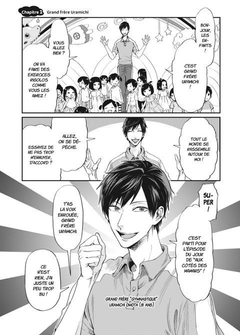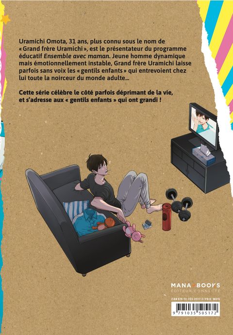 Un hymne cynique à la vie d'adulte !Uramichi Omota, 31 ans, plus connu sous le nom de " Grand frère Uramichi ", est le présentateur du programme éducatif Aux côtés des mamans. Jeune homme dynamique mais émotionnellement instable, Grand frère Uramichi laisse parfois sans voix les " gentils enfants " qui entrevoient chez lui toute la noirceur du monde adulte... Cette série célèbre le côté parfois déprimant de la vie, et s'adresse aux " gentils enfants " qui ont grandi !