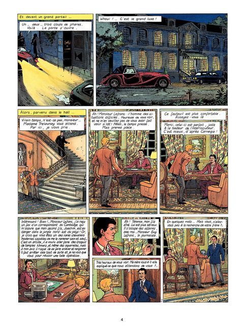 Difficile pour Guy Lefranc de dire non à la richissime Barbara Trelaunay, quand celle-ci lui propose une enveloppe de cent mille dollars et un billet d'avion. Destination, le Cambodge. Mais pas pour faire du tourisme, comme Lefranc s'en plaindra plusieurs fois. Non, pour rechercher son fils, parti faire des croquis des temples Khmers, mais qui serait l'objet de menaces d'enlèvement. Lefranc accepte cette mission et, bien vite, l’aventure est au rendez-vous. Tous les ingrédients chers à “Lefranc” sont présents. Le mystère, le dépaysement, les complots machiavéliques. Apparu pour la première fois en 1952, il n'a pas pris une ride. Sous le crayon alerte de Christophe Simon, il semble même avoir rajeuni. Le maître et son élève ont su conserver intacte la fraîcheur des récits de “Lefranc”. La série est devenue un classique, mais chaque nouvel album continue d’apporter son lot de sensations fortes et de rebondissements, comme au premier jour.