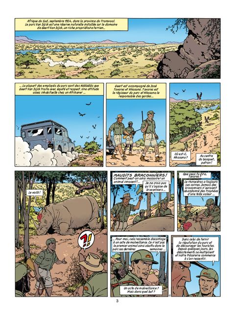 En vacances en Alsace, Jeanjean et Lefranc font la connaissance d'Eline Van Dijck. De l'autre côté du globe, dans le Bush d'Afrique du Sud, d'étranges événements ont lieu dans le parc Van Dijck, un lieu de protection et de découverte de la vie sauvage administré par son père, Geert. Des animaux y sont abattus et les touristes se font de plus en plus rares. A Strasbourg, alors qu'ils se reposent après leur journée de ski, Jeanjean et Lefranc sont réveillés en pleine nuit par des cris : Eline vient d'être enlevée. Alors que la crise de l'apartheid est à son sommet en Afrique du Sud, pourquoi cette jeune fille s'est-elle faite enlevée ? Qui aurait intérêt à faire chanter Geert Van Dijck ?