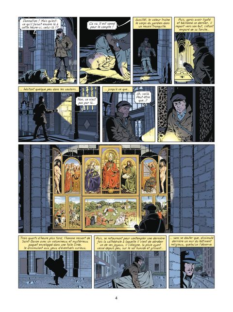 Gand, en pleine nuit, un homme s'enfuit de la cathédrale. Le retable de l'Agneau Mystique a été volé. Mais tout le monde sait qu'il s'agit d'un faux. Pourquoi donc vouloir voler un faux tableau ? Lefranc va essayer de percer le mystère de ce vol. Il se retrouve embarquer dans le milieu de l'art et des faussaires. De Gand à Venise, notre reporter se lance sur les traces d'un des plus grands chefs-d’œuvre de l'Humanité. Il va, par ailleurs, essayer de percer le mystère qui reste en suspend depuis des années : qui a volé l'Agneau Mystique ?