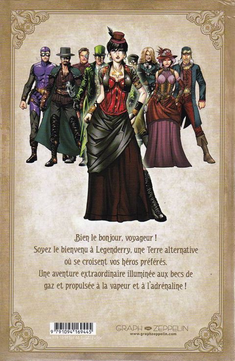 Poursuivant la série imaginée par Bill Willingham, le célèbre auteur de Fables, honoré de 7 Eisner Award, Legenderry et son environnement steampunk, accueille aujourd'hui Vampirella, la femme vampire. De retour à Big City, Vampirella découvre que son club, le Scarlet Club, a été fermé sur ordre d'un mystérieux «comité pour la décence». Vampirella va mener l'enquête pour déjouer la machination, et croiser les personnages habituels tels que Blackmass et la Dame à la voilette mais aussi Van Helsing père et fils (que les lecteurs de Vampirella connaissent bien), Rupert de Hentzau et Rodolphe Rassendyll (du Prisonnier de Zenda), et d'autres personnages haut en couleur comme la Chauve-souris noire! Legenderry une histoire dans laquelle les personnages principaux de la team de l'éditeur américain Dynamite vous entraînent dans une aventure époustouflante.