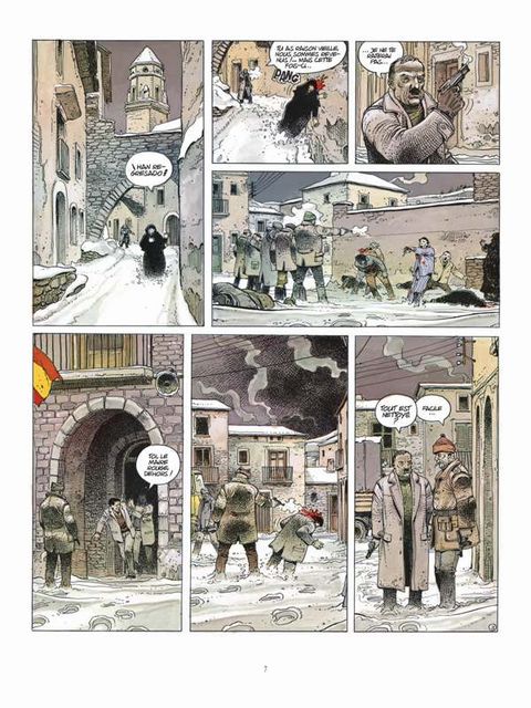Par une nuit d’hiver en Espagne, sur les hauts plateaux de la province de l’Aragon, une expédition punitive s’abat sur le petit village de Nieves. Tous ses habitants, y compris les femmes et les enfants, sont exécutés et le village est incendié. L’attentat est revendiqué par un groupe politique, les Phalanges de l’Ordre Noir, au nom des « valeurs de l’Occident chrétien ». Le village, haut lieu des affrontements entre républicains et franquistes à la fin des années trente lors de la guerre d’Espagne, venait de voter massivement à gauche lors des dernières élections… Convaincus que ce massacre signe le retour de l’extrême droite qu’ils ont autrefois combattue, un groupe d’anciens des brigades internationales, quarante ans après, se décide à reprendre les armes. De l’Espagne à Suisse en passant par l’Italie, les Pays-Bas et la France, une dizaine d’hommes que l’âge a rendus las, mais toujours fidèles à leurs convictions de jeunesse, vont ainsi donner la chasse à leurs vieux ennemis, jusqu’à l’affrontement final. Initialement publié en 1979, Les Phalanges de l’Ordre Noir est une méditation désenchantée sur la fraternité, le temps qui passe et la vanité des idéaux. Avec ce brillant récit, Bilal et Christin inaugurent la veine des thrillers politiques qu’ils approfondiront un peu plus tard avec Partie de chasse