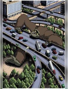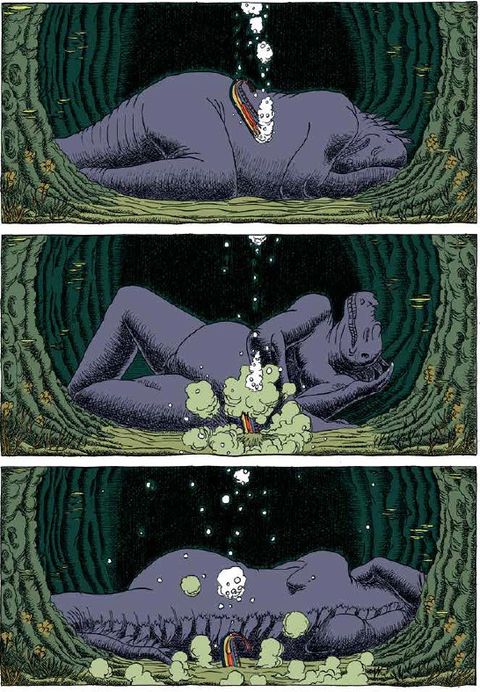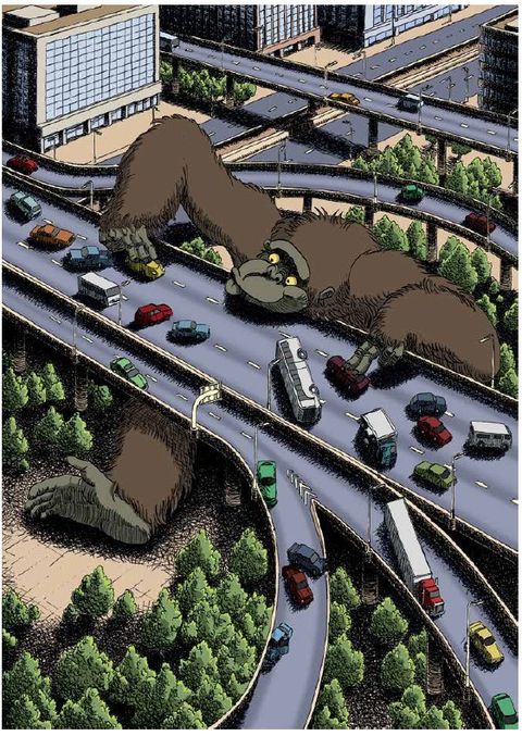 Dans Légendes urbaines, il y a la ville, il y a la vie, et il y a le mélange incroyable des deux : des scènes époustouflantes de grandeur où des animaux de légendes (Godzilla, King Kong, etc.) reprennent possession de ces grands espaces domestiqués par l'homme. Et tout le monde rêve de voir ça ! Des vues aériennes, des échelles de grandeur variées qui donnent des situations décalées, servies par un dessin vertigineux et précis. Un énorme plaisir des yeux qui fera sortir lecteur et lectrice de leur zone de confort.