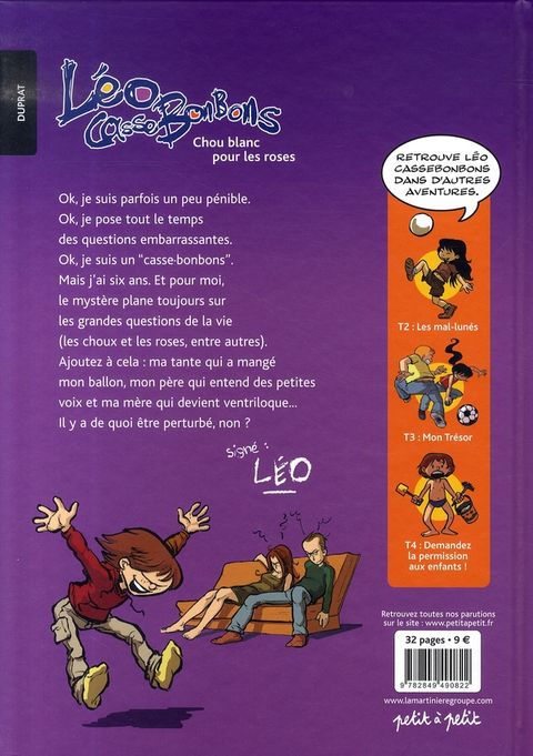Ok, je suis parfois un peu pénible. Ok, je pose tout le temps des questions embarrassantes. ok, je suis un "casse-bonbons". mais j'ai six ans. et pour moi, le mystère plane toujours sur les grandes questions de la vie (les choux et les roses, entre autres). ajoutez à cela : ma tante qui a mangé mon ballon, mon père qui entend des petites voix et ma mère qui devient ventriloque... il y a de quoi être perturbé, non ?