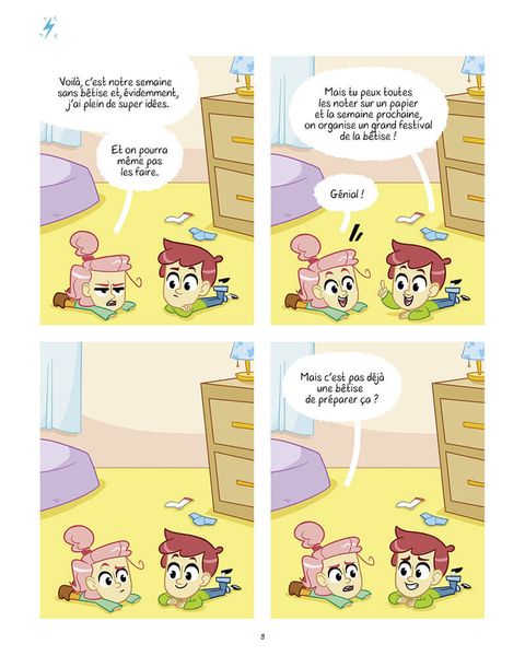 Léon (le grand frère) et Lena (la petit soeur) sont à la maison, au calme, sans parents... ce qui leur laisse tout le temps de trouver des bêtises, toutes plus inventives et méchantes les unes que les autres ! Il faut dire que les tentations autour d'eux sont légion ! Car il y a tellement d'animaux à martyriser, tellement de vieux schnocks à persécuter dans le voisinage, et tellement de choses à incendier... De toute façon, Léon et Lena s'en fichent : il n'y a personne pour les punir. Et puis, ils sont si mignons qu'on leur donnerait le bon Dieu sans confession (ce qui serait d'ailleurs une mauvaise idée, car le bon Dieu n'en sortirait probablement pas indemne !).