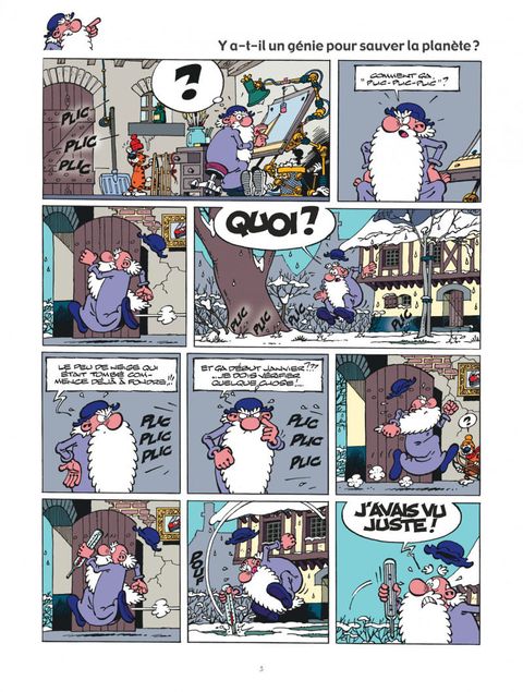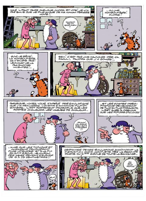 Il n'y a plus de saisons, mon bon Génie ! Qu'allons-nous devenir si la neige commence à fondre fin janvier ? A cette question, le pékin moyen répond par un haussement d'épaules. C'est que n'est pas Génie qui veut ! Léonard a, pour sa part, quelque peu extrapolé et analysé la chose pour aboutir à la conclusion suivante: le réchauffement climatique ira de mal en pis, jusqu'à modifier la face de la planète au... XXIe siècle ! Heureusement pour nous, pauvres habitants du futur, Léonard, Basile et leur machine à voyager dans le temps sont sur le coup. Rions donc un peu en attendant la fonte des glaces...\0