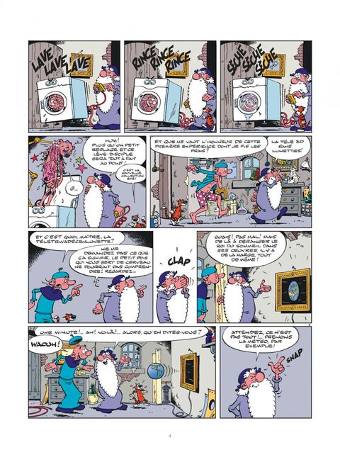 Léonard n'est jamais à court d'inventivité et toujours à la pointe de la technologie. Cette fois, il invente la TV 3D sans lunettes et c'est bien sûr Basile, son disciple, qui sert une fois de plus de cobaye!