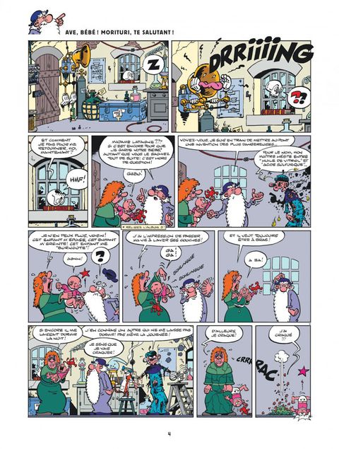 Ainsi, il Signore Léonard souffrirait de n'avoir jamais eu d'enfants ! S'il a pratiquement tout inventé, notre génie n'a en effet pas été fichu d'avoir le moindre descendant, en un mot d'être papa. Bien sûr, il y a Basile, son disciple bien aimé et souffre-douleur préféré. Bien sûr, il ne manque pas de bambins dans le quartier dont il peut s'occuper. Les mamans du voisinage ne manquent d'ailleurs pas de solliciter ses talents créatifs. Mais, pas de rejeton bien à lui ! Il lui faut donc trouver, sinon inventer la mère idéale... Et d'abord et surtout apprendre comment on fait des bébés ! Mais, à son âge, le mieux n'est-il pas d'adopter des marmots déjà tout faits ? Sitôt dit, sitôt fait ! Commence ainsi pour notre génie, l'apprentissage du rôle difficile de père de famille, doublé de celui de maître d'une savoureuse école des fans...