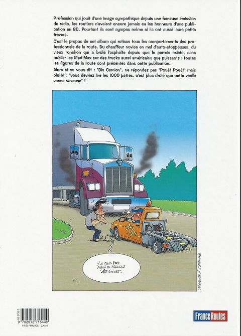 Profession à l'image sympathique depuis une fameuse émission de radio, les routiers n'avaient jamais eu les honneurs d'une BD. Pourtant, ils sont sympas même s'ils ont leurs petits travers. C'est le propos de cet album qui ratisse tous leurs comportements, du chauffeur novice en mal d'autostoppeuse, au vieux ronchon qui a brûlé l'asphalte depuis que le permis existe : toutes les figures de la route y sont !