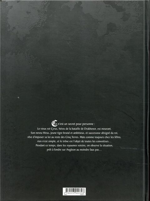 Ce n'est un secret pour personne : le vieux roi Cyrus, héros de la bataille de Drakhenor, est mourant. Son neveu Hirus, jeune tigre brutal et ambitieux, et successeur désigné du roi, rêve d'imposer sa loi au reste des 5 Terres. Mais comme toujours chez les félins, rien n'est simple, et le trône est l'objet de toutes les convoitises, tandis que dans les royaumes voisins, on observe la situation, prêt à fondre sur Angleon au moindre faux pas...