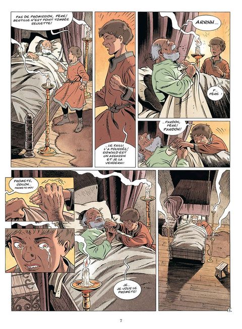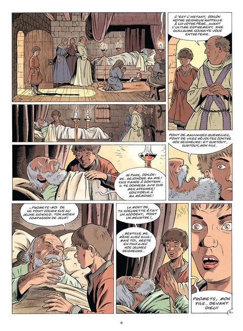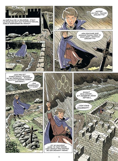 Au château de la Deunière, c'est la peine qui bat les tempes d'Odilon, fidèle compagnon de Mahaut... Car le jeune vient juste d'enterrer sa soeur. Il jure sur sa tombe que Sigwald paiera. Odilon veut aussi retrouver Mahaut l'amie de sa soeur, prisonnière des griffes de son terrible frère. Il souhaite l'épouser puis prendre possession du royaume de Crozenc. Il en fait le serment sur la tombe de sa soeur... Mais le père d'Odilon, Sire Guillaume, est en train de mourir. Sur son lit de mort, juste avant le trépas, il fait jurer à son fils devant Dieu, de ne pas se venger de Sigwald, de lui pardonner... Cruel dilemme pour le jeune fougueux... Que va-t-il faire ?... Désobéir aux dernières volontés de son père ou renoncer à son serment ?... Or, pendant que Sigwald de Crozenc s'en va en Engoulesme pour son adoubement, on apprend que sa mère serait responsable de l'emprisonnement de Mahaut... afin que Sigwald soit le seul héritier des terres de Monseigneur Hughes... Un conflit familial des plus déchirants est en train de naître...