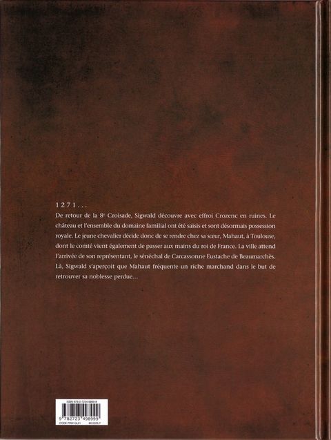De retour de croisades, Sigwald découvre avec effroi Crozenc en ruines. Le château et l'ensemble du domaine familial ont été saisis et sont désormais possession royale. Le jeune chevalier décide donc de se rendre chez sa soeur, Mahaut, à Toulouse, dont le comté vient également de passer aux mains du roi de France. La ville attend l'arrivée de son représentant, le sénéchal de Carcassonne Eustache de Beaumarchés. Là, Sigwald découvre que Mahaut fréquente un riche marchand, Raimon Castenet, dans le but de retrouver sa noblesse perdue.