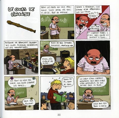 Une BD aussi corrosive que touchante, parue initialement aux éditions Coiffeurs pour dames en 2012 et ressortie chez Lapin ! Derrière l'ironie enfantine mordante, et entre quelques clins d'oeil glissés à d'autres auteurs comme Pénélope Bagieu ou Lolita Séchan, Kek décline une vision panoramique de ses jeunes années scolaires, passant des cas sociaux trop oubliés sur les bancs de son établissement aux premiers de la classe forcément têtes à claques.