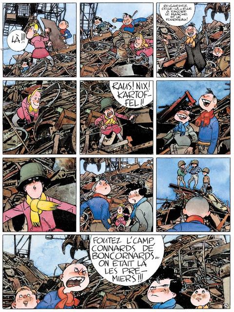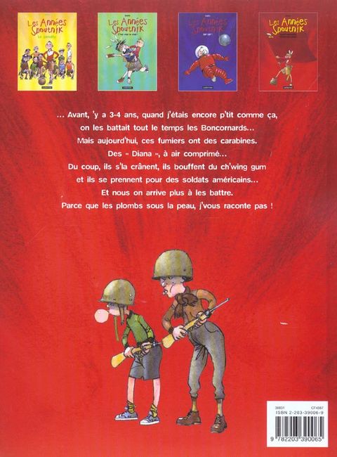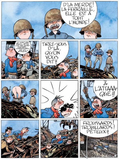 Avant, y a 3-4 ans, quand j'étais encore p'tit comme ça, on les battait tout le temps les Boncornards... Mais aujourd'hui, ces fumiers ont des carabines. Des "Diana", à air comprimé... Du coup, ils s'la crânent, ils bouffent du ch'wing gum et ils se prennent pour des soldats américains... Et nous on arrive plus à les battre. Parce que les plombs sous la peau, j'vous raconte pas !