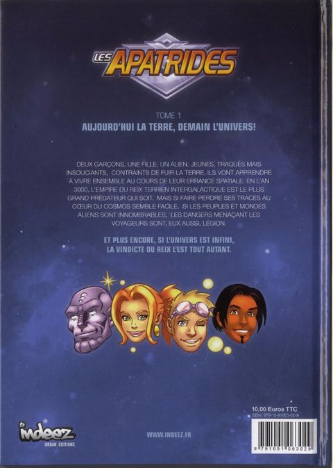 Deux garçons, une fille, un alien. Jeunes, traqués mais malgré tout insouciants, contraints de fuir la Terre, ils vont apprendre à vivre ensemble au cours de leur errance spatiale. En l'an 3000, les occasions de perdre ses traces au coeur du vaste cosmos sont multiples. Les peuples et mondes aliens à découvrir sont innombrables. Mais les dangers inédits menaçant les voyageurs sont, eux aussi, légion. Par-dessus tout, si l'Univers est infini, la vindicte du Reix l'est tout autant.