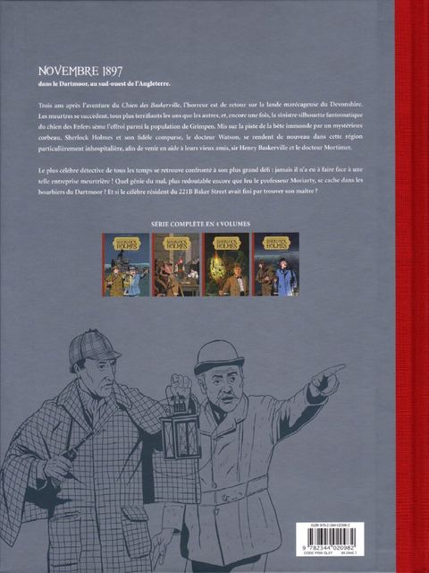 Novembre 1897 dans le Dartmoor, sud-ouest de l'Angleterre. Trois ans après l'aventure du Chien des Baskerville, l'horreur est de retour sur la lande marécageuse du Devonshire. Les meurtres se succèdent, tous plus terrifiants les uns que les autres et, encore une fois, la silhouette fantomatique du chien des Enfers sème l'effroi parmi la population de Grimpen. Mis sur la piste de la bête immonde par un mystérieux corbeau, Sherlock Holmes et son fidèle comparse, le docteur Watson, se rendent de nouveau dans cette région particulièrement inhospitalière, afin de venir en aide à leurs vieux amis, Sir Henry Baskerville et le docteur Mortimer. Le plus célèbre détective de tous les temps se retrouve face à son plus grand défi : jamais il n'a eu à faire face a une telle entreprise meurtrière ! Quel génie du mal, plus redoutable encore que feu professeur Moriarty, se cache dans les bourbiers du Dartmoor ? Le célèbre résident du 221B Baker Street pourrait bien avoir trouvé son maître...