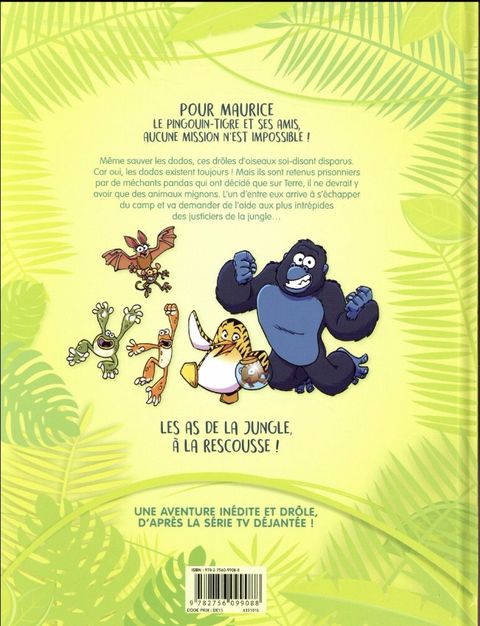 Pour ces justiciers de la jungle, aucune mission n'est impossible ! Même sauver les dodos, ces drôles d'oiseaux soi-disant disparus... Une aventure comique rocambolesque d'après la série d'animation la plus déjantée du moment ! Non, les dodos n'ont pas disparu ! Ils sont retenus prisonniers par de méchants pandas qui ont décidé qu'il ne devrait y avoir que des animaux mignons sur Terre. Appelés à l'aide, Maurice le manchot-tigre et ses acolytes vont vivre d'incroyables aventures : combattre un panda kung-fu, capturer des papillons, vaincre des loutres-requin-pirates et manger un plat trop épicé. Les As, à la rescousse !