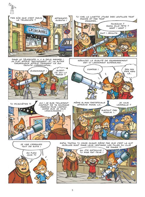 Quentin est amoureux de Lisa, la soeur de son meilleur copain Rodrigue. Problème : Lisa est fan d'astronomie, une discipline ultra compliquée qu'il va devoir apprendre très vite s'il veut pouvoir conquérir son coeur. Mais si Quentin a des lacunes, il est motivé ! Première étape, se procurer un télescope... Et c'est parti pour apprendre sur le tas le nom des planètes, les constellations, le Big Bang et toutes les merveilles de l'univers ! Les Astromômes est la nouvelle série jeunesse qui vous propose de découvrir de façon ludique le monde merveilleux de l'astronomie ! Cette série de gags en une planche est également agrémentée de fiches techniques, expliquant par exemple comment récupérer de la poussière stellaire ou fabriquer ses propres lunettes d'éclipse solaire avec les moyens du bord. Mêlant à la perfection humour et vulgarisation scientifique, Les Astromômes est préfacée par Alain Cirou, directeur de l'Association Française d'Astronomie, rédacteur en chef de la revue Ciel et espace et chroniqueur spécialisé sur Europe 1.