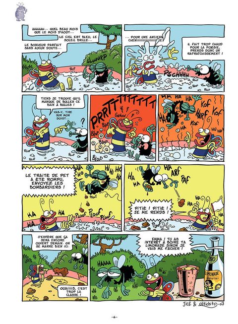Le bourdonnant Bazile, aidé de son inséparable ami Jean-Michel - le papillon zélé mais pas trop - ne manque jamais de ressources pour tomber les filles, faire des blagues de haut vol, dénicher la décharge la plus cool du moment, ou rester dans la bouse jusqu'au cou... La vie rêvée d'une mouche en somme. Rigolo et chatoyant, cet ouvrage est le cadeau idéal à mettre dans les sacs à dos de vos chers enfants.
