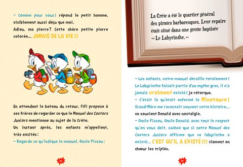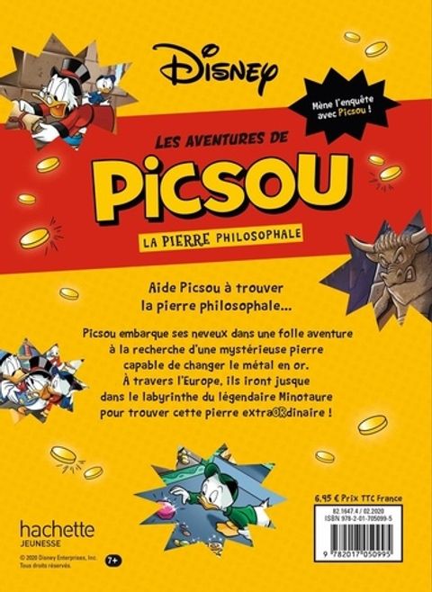 Une aventure de Picsou, inédite et intégrale, dans un format poche de lecture interactive ! - Une aventure écrite d'après les récits de Carls Barks. - Un roman de 96 pages qui associe texte, jeux et illustrations pour s'immerger dans l'histoire. - Une lecture interactive, accompagnée d'énigmes à résoudre qui ponctuent l'enquête ! - Un niveau de lecture adapté aux enfants entrant dans la lecture autonome, avec des chapitres courts et faciles à lire. Dès 7 ans. L'histoire : Créée au Moyen Age par un alchimiste, la pierre philosophale serait capable de changer du métal en or... Il n'en faut pas plus pour que Balthazar Picsou décide d'embarquer ses neveux dans une folle aventure : de l'Allemagne, en passant par l'Italie, l'Irak et la Syrie, ils iront jusque dans le labyrinthe du légendaire Minotaure à la recherche de cette pierre extraORdinaire ! Rien ne pourra arrêter le milliardaire, pas même cet étrange petit bonhomme aux lunettes rondes qui les suit partout...