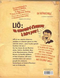 Lio, véritable phénomène dans le monde du comic strip, est de retour ! Un concentré d'humour noir et de tendresse, des gags à portée universelle, débordant d'imagination et presque sans paroles. LIO : un concentré d'humour à faire peur ! LIO et ses copains bizarres, zombies et calamar géant en tête, sont de retour... pour le plus grand bonheur de tous ! Sur les traces de ses illustres aînés, Calvin, Garfield, Max et les Maximonstres, Charlie Brown, la famille Addams et bien d'autres, LIO nous entraîne dans son univers peuplé de créatures fantastiques et teinté d'humour noir et d'absurde.