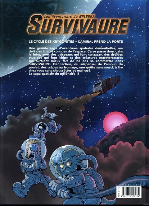 <div>survivaure, une Grande Saga D’aventures Spatiales Démentielles, au Delà des Limites Connues de L’espace. Ça se Passe donc dans le Futur, avec des Vaisseaux qui Font Wizzzz, des Droïdes Stupides qui Font Bip et des Créatures Extraterrestres qui Auraient Mieux Fait de ne pas se Commettre dans Survivaure. </div><div>de L’action, du Suspense, de L’amour, du Poulet, des Crêpes au Fromage, une Quête sans Merci, à Lire chez vous sans Chaussettes et Mal Rasé. la Saga Spatiale du Millénaire : Survivaure !!</div><div>cette Intégrale Contient :- Tome 1 : le Cycle des Krygonites C.1- Tome 2 : le Cycle des Krygonites C.2- Tome 3 : le Cycle des Krygonites C.3- Tome 4 : l'Amiral Prend la Porte</div>