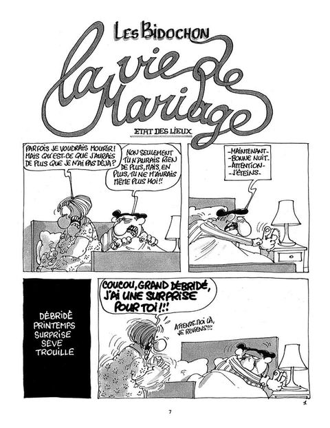 On ne présente plus le couple célèbrissime composé de Raymonde et Robert Bidochon. Héros tragi-comiques d'un destin exemplaire de Français plus que moyens, les Bidochon nous font rire (parfois jaune) aux dépens de notre prochain. C'est mal. Mais c'est si bon de penser que nous, au moins... Et pourtant... Dans ce treizième album de leurs aventures, Binet déchaîne plus encore son talent d'humoriste de la comédie humaine : il nous dresse un bilan caustique, drôle, cruel, gai, émouvant et vraisemblable d'une vie de couple marié. C'est si bien vu que même les célibataires s'y reconnaîtront ! De toute façon, les Bidochon, c'est les autres...