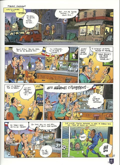 Ce ne fut pas sans mal, mais ça y est, les Bleus sont qualifiés ! Plus qu’un objectif, obtenir la coupe du monde ! « Et 1 et 2 et 3 -0 » reste dans les mémoires, offrant aux supporters l’espoir ultime de voir à nouveau le titre mondial fouler le sol français ! Joueurs comme supporters sont gonflés à bloc et attendent de pieds fermes de montrer de quoi ils sont capables. Premier tome d’une série d’albums de gags réalisé en collaboration avec la Fédération Française de Football, les Bleus relate sur le ton de l’humour différents grands moments de préparation de cette coupe du monde aussi bien dans le camp des joueurs que celui des supporters.