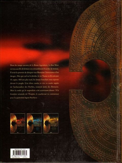 Le premier opus de "Les Boucliers de Mars" pose solidement les fondations géographiques et historiques de l'intrigue à venir. Tout en étant marqué par un style de dessin très précis de la part de Gine, la colorisation peut sembler un peu trop marquée. Malgré quelques éléments prévisibles dans le scénario, (...) Voir le commentaire