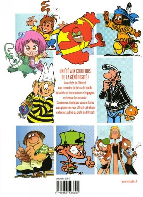 UN ÉTÉ AUX COULEURS DE LA GÉNÉROSITÉ ! Aux côtés de l'Unicef, une trentaine de héros de bande dessinée et leurs auteurs s'engagent en faveur des enfants ! Comme eux, impliquez-vous et faites-vous plaisir en vous offrant cet album collector, publié au profit de l'Unicef.