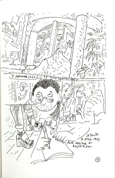 C'est parce que Joann Sfar peine à dessiner qu'il reprend l'écriture de ses carnets. Il fait d'ailleurs un pacte avec lui-même : dessiner dès qu'il aura envie de prendre son téléphone. Et ça fonctionne, bien mieux que son régime ! Durant l'épidémie de Covid, il se dévoile ainsi dans sa vie personnelle comme professionnelle. Mais loin de n'être qu'un journal de l'intime, son carnet est avant tout une réflexion toujours renouvelée sur la société, la religion, la famille, l'art, la musique... A travers ses pensées couchées sur le papier, ses croquis pris sur le vif, Joann Sfar dit comme personne nos questionnements, nos doutes, nos angoisses... Ses dessins laissent une trace, ils sont le "souvenir qu'en telle année nous vivions telle chose, chacun dans nos vies différentes mais synchrones".