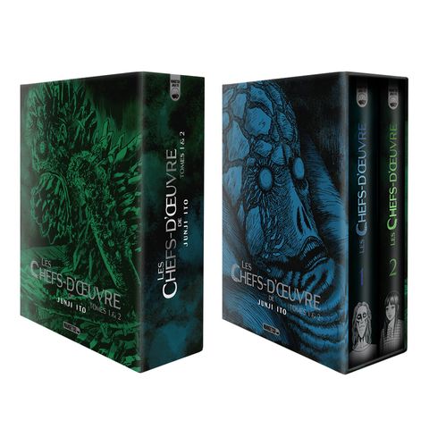 18 histoires exceptionnelles de Junji Ito, publiées au sein des magazines<em> Nemuki(+) </em>et<em> Halloween</em>, selectionnées parmi le meilleur du mangaka. Cette oeuvre en deux volumes, inédite en France et contenant de nombreux bonus, s'intègre dans une collection grand format, à la fabrication soignée, spécialement dédiée au maître de l'horreur.Vous retrouverez dans les deux volumes de ce coffret les préfaces de Maghla et d'Alt236 (<em>Berserk : À l'encre des ténèbres</em>, <em>Astra Mortem</em>) ainsi que des analyses en fin d'ouvrage par Morolian, spécialiste francophone de l'auteur. Chaque recueil est également agrémenté de croquis originaux et de pages de recherches préparatoires.Un vieux vinyle qui vous hante par-delà la mort, des victimes d'une malédiction au corps perforé, un mannequin de papier glacé au visage monstrueux, la tête géante d'une célébrité pendue qui flotte dans le ciel tel un ballon, une jeune femme traumatisée par la vision d'une épouvantable chenille ou une famille de marionnettistes aux inquiétants pantins...Une petite fille aux penchants pervers, des cous qui s'allongent de manière sinistre, un village perpétuant d'étranges rites mortuaires, des canalisations dans lesquelles résonnent de lugubres râles d'agonie, un écolier à l'apparence terrifiante qui menace ses camarades de les écorcher vifs...Un condensé ultime de la vision de l'horreur selon Junji Ito !Les nouvelles issues des <em>Chefs-d'oeuvr</em>e vol. 1 : <em>Le Vieux Vinyle</em> (décembre 1990), <em>Frissons </em>(novembre 1991), <em>Le Mannequin</em> (juillet 1992), <em>Les Ballons pendus</em> (janvier 1994), <em>Le Castelet</em> (mars 1994), <em>Le Peintre</em> (juillet 1995), <em>Un Rêve sans fin</em> (janvier 1997), <em>La Lignée</em> (janvier 1996), <em>Lipidémie </em>(mars 2003).Les nouvelles issues des <em>Chefs-d'oeuvr</em>e vol. 2 : <em>Les Cous hallucinés</em> (mars 1989), <em>La Sadique</em> (mars 1990), <em>La Ville funéraire</em> (juillet 1994), <em>Tuyaux Hurlant</em>s (septembre 1993), <em>La Chuchoteuse </em>(novembre 2009), <em>La Femme-limace</em> (septembre 1994), <em>Horreur charnelle</em> (mai 1994), <em>Les Rumeurs</em> (mai 1995), <em>Doux Adieux</em> (novembre 2013).