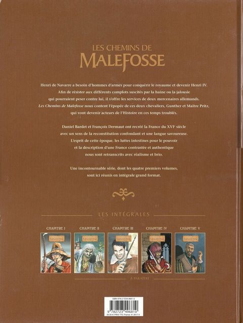 Henri de Navarre a besoin d'hommes d'armes pour conquérir le royaume et devenir Henri IV. Afin de résister aux différents complots suscités par la haine ou la jalousie qui pourraient peser contre lui, il s'offre les services de deux mercenaires allemands. Les Chemins de Malefosse nous content l'épopée de ces deux chevaliers, Gunther et Maître Pritz, qui vont devenir acteurs de l'Histoire en ces temps troublés. Un incontournable de la collection Vécu, dont les quatre premiers volumes, formant une histoire complète, sont ici réunis en intégrale grand format.