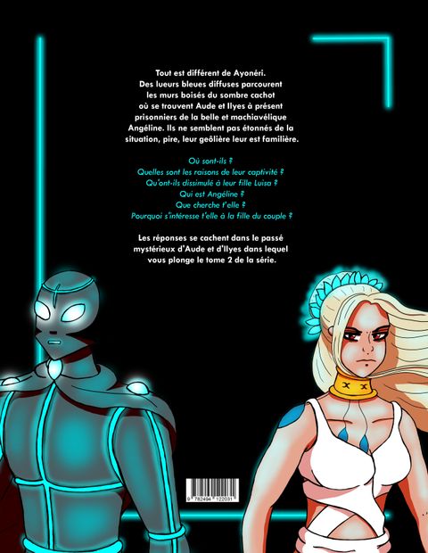 Série de BD SF/Fantasy/Multivers/Fantastique/Manga/Comics Young adult - à partir de 15 ans. Tout est différent de Ayonéri. Des lueurs bleues diffuses parcourent les murs boisés du sombre cachot où se trouvent Aude et Ilyes à présent prisonniers de la belle et machiavélique Angéline. Ils ne semblent pas étonnés de la situation, pire, leur geôlière leur est familière. Où sont-ils ? Quelles sont les raisons de leur captivité ? Qu'ont-ils dissimulé à leur fille Luisa ? Qui est Angéline ? Que cherche t’elle ? Pourquoi s'intéresse t'elle à la fille du couple ?