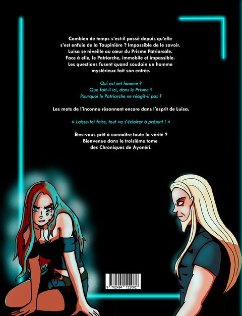 Tome 3 de la série les Chroniques de Ayonéri. Grand format 22 x 28 cm - 80 pages couleur Série de BD SF/Fantasy/Multivers/Fantastique/Jeunesse Combien de temps s’est-il passé depuis qu’elle s’est enfuie de la Taupinière ? Impossible de le savoir. Luisa se réveille au cœur du Prisme Patriarcale. Face à elle, le Patriarche, immobile et impassible. Les questions fusent quand soudain un homme mystérieux fait son entrée. Qui est cet homme ? Que fait-il ici, dans le Prisme ? Pourquoi le Patriarche ne réagit-il pas ? Les mots de l'inconnu résonnent encore dans l'esprit de Luisa. « Laisse-toi faire, tout va s’éclairer à présent ! » Êtes-vous prêt à connaître toute la vérité ? Bienvenue dans le troisième tome des Chroniques de Ayonéri.