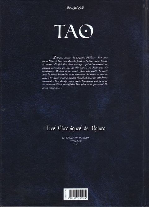 « 200 ans après «la Légende d'Eikos», Tao, une jeune Elfe, vit heureuse dans la forêt de Saltia. Mais, toutes les nuits, elle fait des rêves étranges, qui lui montrent un garçon inconnu, un fils qu'elle aurait eu dans une vie antérieure. Décidée à en savoir plus, elle quitte la forêt avec la ferme intention de le retrouver. Sa route va croiser celle d'Urik, un jeune aspirant chevalier, avec qui elle devra surmonter bien des épreuves. Mais Tao ignore qu'elle va se retrouver mêlée à une affaire bien plus vaste que ce qu'elle avait imaginé... »