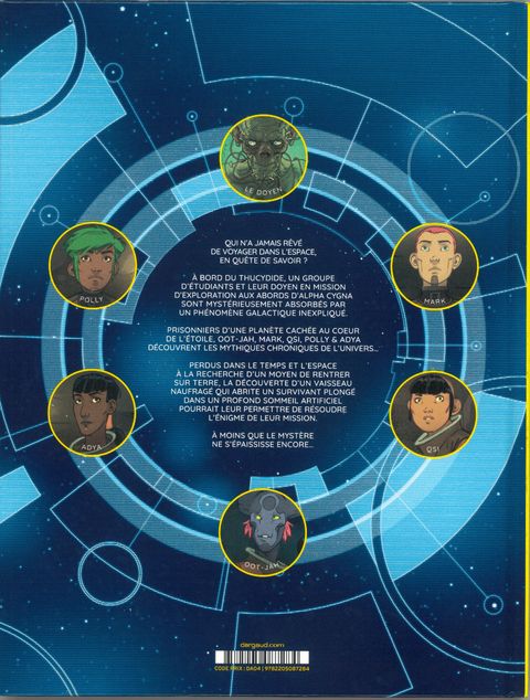 Suite à un phénomène galactique inconnu, Oot-Ja, Mark, Qsi, Polly et Adya sont perdus à bord du Thucydide. Le Doyen de l'Académie des sciences historiques universelles en charge de la mission d'exploration a été destitué pour trahison, laissant le groupe d'étudiants aux commandes. Ne connaissant ni leur position dans l'univers ni l'époque à laquelle ils se trouvent, les jeunes chercheurs errent dans l'espace en quête d'un moyen de rentrer chez eux, lorsqu'ils tombent sur un vaisseau abandonné. Alors qu'ils pensent qu'il s'agit d'une épave ancienne, Polly et Mark découvrent un humain, survivant endormi, qui pourrait peut-être leur apporter des réponses...