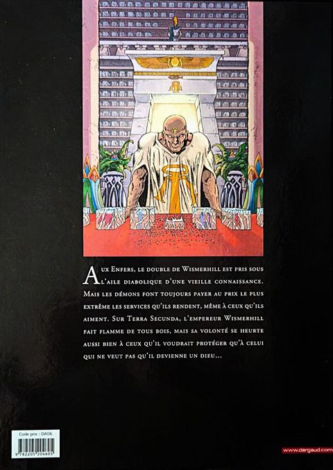 Aux Enfers, le double de Wismerhill est pris sous l’aile diabolique d’une vieille connaissance. Mais les démons font toujours payer au prix le plus extrême les services qu’ils rendent, même à ceux qu’ils aiment. Sur Terra Secunda, l’empereur Wismerhill fait flamme de tous bois, mais sa volonté se heurte aussi bien à ceux qu’il voudrait protéger qu’à celui qui ne veut pas qu’il devienne un dieu… Un nouvel opus foisonnant, d’une très grande richesse visuelle, issue de l’imagination démiurgique de François Froideval et du dessin de très grande classe de Fabrice Angleraud.