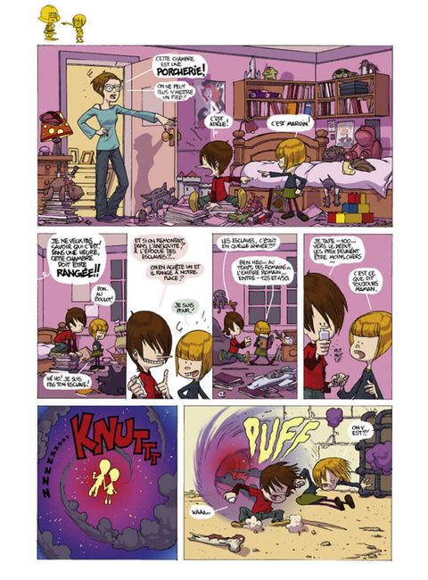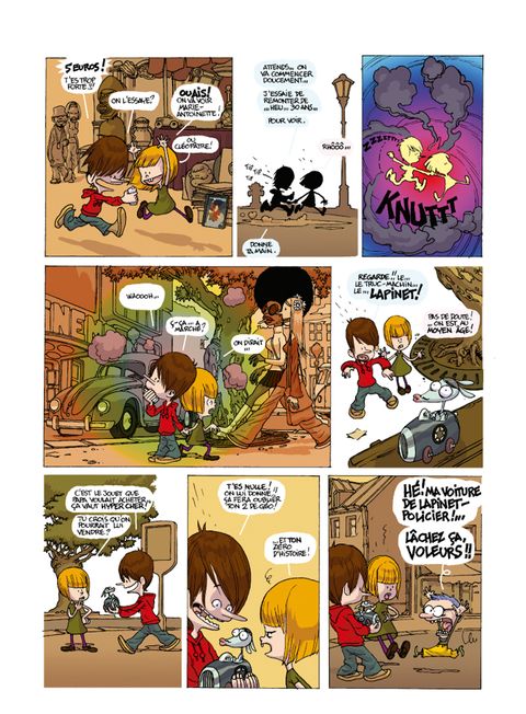 Les enfants dans le vent qui sautent dans le temps ! On trouve de tout dans les brocantes. Des vieux jouets trop nazes. Des BD trop nulles. Et des téléphones portables même pas capables d´envoyer des SMS ! Heureusement celui que viennent d´acheter Adèle et Marvin à un antiquaire un peu bizarre possède une fonction incroyable : celle d´envoyer ses possesseurs dans le temps, afin de visiter en vrai les époques qu´on ne connaît d´habitude qu´à travers les pages ennuyeuses des livres d´école ! Alors aller à Rome pour acheter un esclave qui rangera votre chambre, ou faire un tour en Gaule pour faire une rédac sur les gaulois, c´est plutôt tentant, hein ? Sauf que quand on est deux gamins gaffeurs comme Adèle et Marvin, les choses tournent généralement à la catastrophe... Avec Les Chronokids, bienvenue dans le drôle de cours d´histoire des professeurs Zep, Stan et Vince !\0
